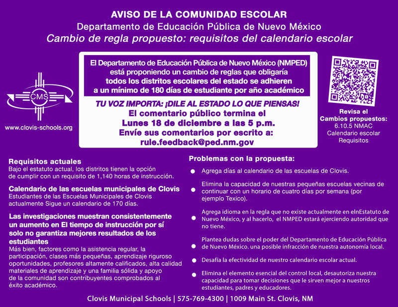 Current Clovis Municipal Schools schedule: